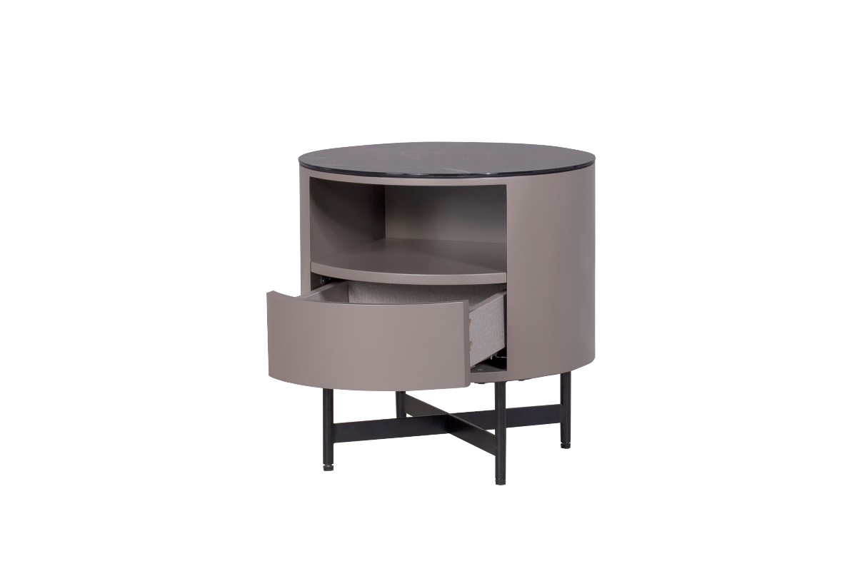 CB-0055C 金香玉玻璃面板+石色啞光主體+黑啞光腳