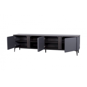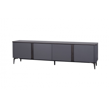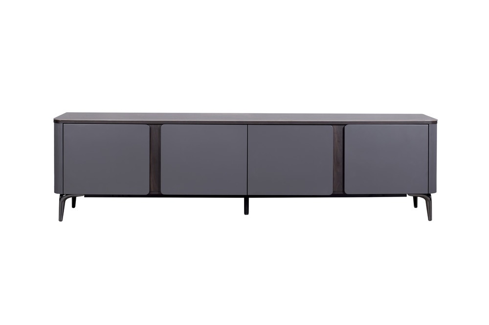 特洛伊灰?guī)r板面板+灰色啞光主體+煙熏色木紋裝飾條+槍色金工腳