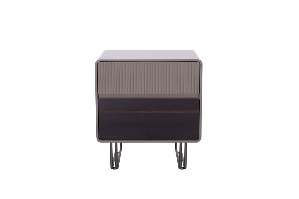 石色啞光主體+煙熏木皮抽面板+金屬深灰金工件