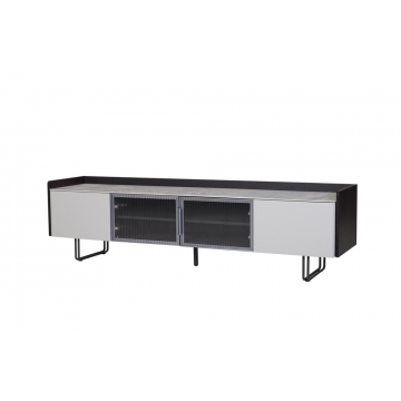卡塔金巖板面板+煙熏木皮主體+淺駝色啞光抽面板+長虹玻璃+紳士灰門框+金屬深灰色金工腳