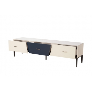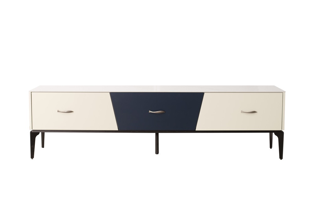 卡塔金巖板面板+米灰啞光主體+靛藍(lán)啞光抽面+黑啞光金工腳